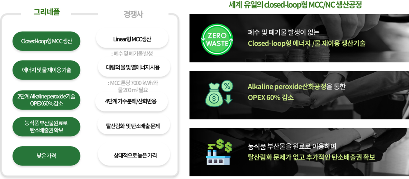 그리네플은 Closed-loop형 청정생산공정을 통해 기후변화에 대응할 수 있는 자원순환형 바이오 신소재를 공급합니다.